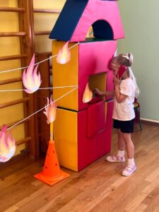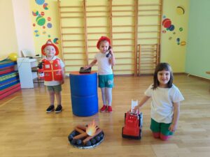 Воспитанники с энтузиазмом участвовали в подвижных играх, эстафетах и музыкальных заданиях, закрепляя знания о правилах поведения в чрезвычайных ситуациях и номерах экстренных служб спасения.