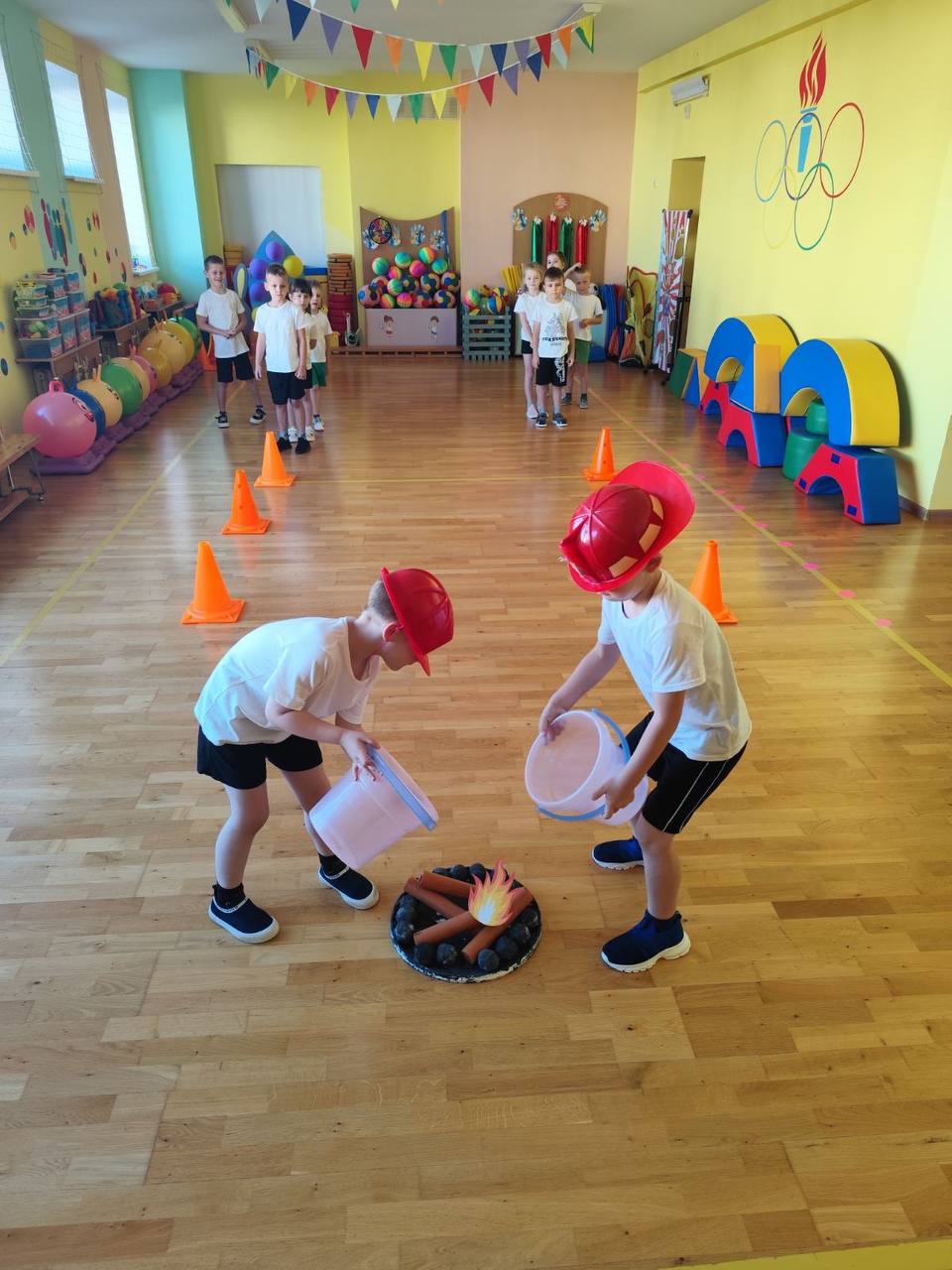 Воспитанники с энтузиазмом участвовали в подвижных играх, эстафетах и музыкальных заданиях, закрепляя знания о правилах поведения в чрезвычайных ситуациях и номерах экстренных служб спасения.